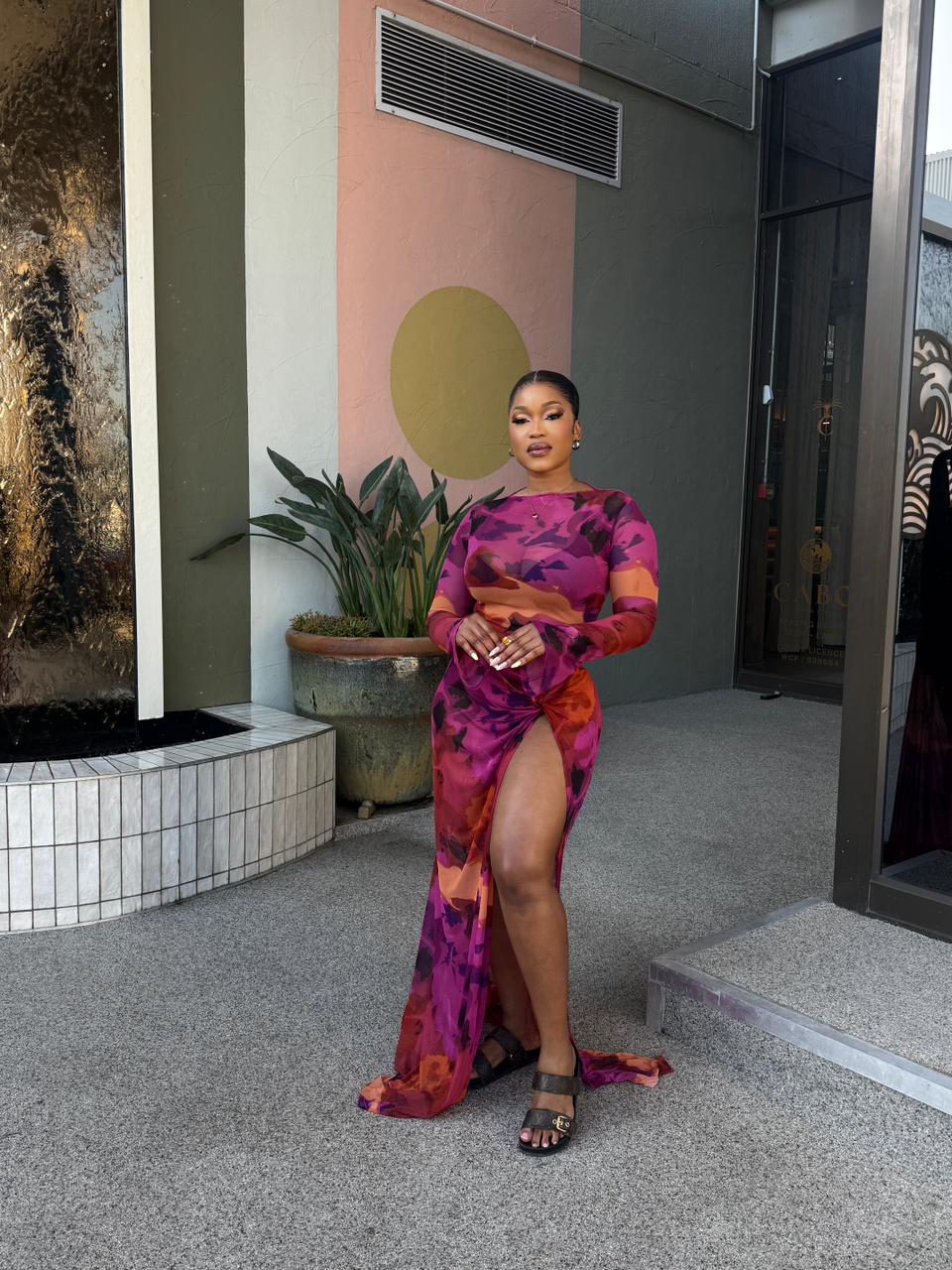 The Caribbean cloud dress is available on pre-order. It comes with a slit as shown...