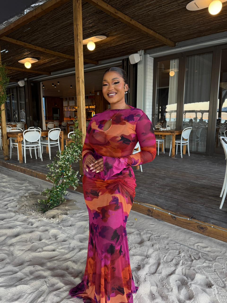 The one-layered Caribbean Summer cotton dress is now available for pre-order. Comes with a slit.
